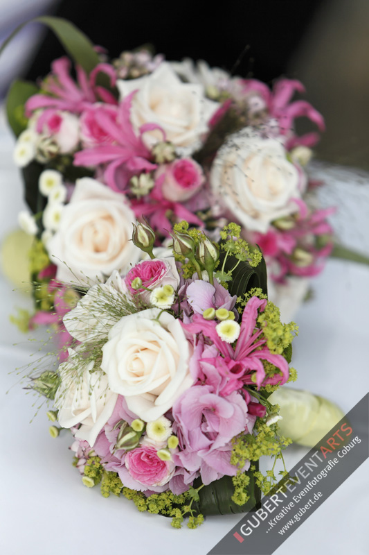 Beispielfotos von Hochzeitssträußen und Blumendeko